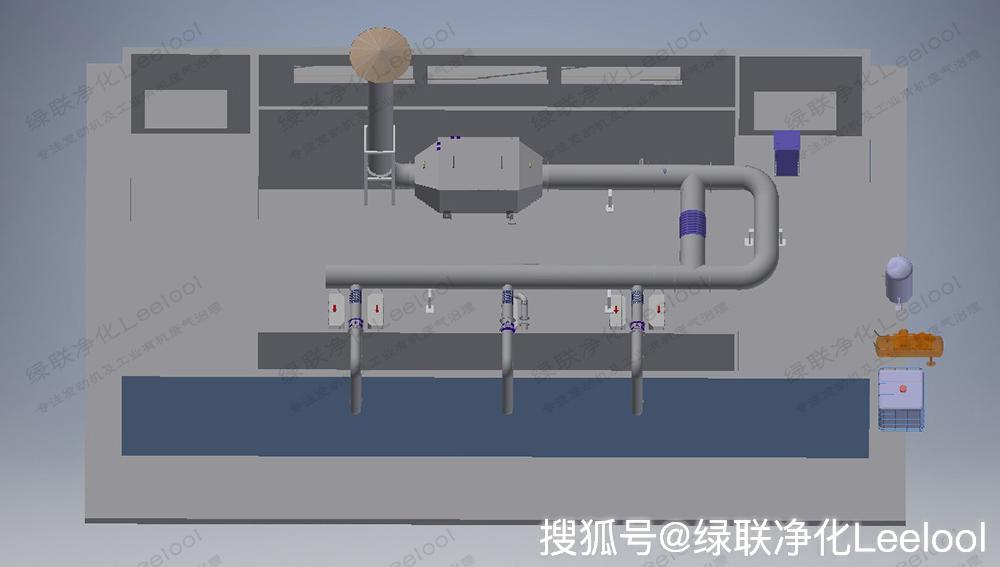 解決方案:三臺發動機尾氣合一處理